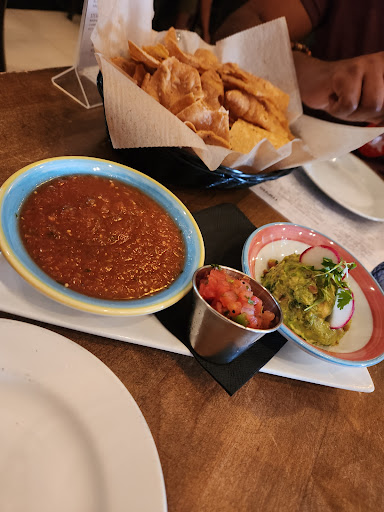 Read moreRead moreVisited on a Sunday for cinco de mayo! They were one of few restaurants that allowed reservations. We arrived about 10-15 minutes early and parked in the lot behind the building which offers complimentary valet. We were still able to be seated and given menus. It was our first time visiting but I was happy that they had enough pescatarian and vegetarian options for me choose from. We were brought waters and then ordered the guac as an appetizer and 2 margaritas. He had the herradura palmoa margarita special and I had the teramana mango margarita. I ordered a baja and buffalo cauliflower taco while he ordered the peruvian chicken, salmon, and baja taco. We continued to talk while we waited. Drinks came then the app and our tacos. My teramana margarita was better than his paloma Buffalo cauliflower baja Peruvian chicken, salmon, baja Those house made chips were delish and I enjoyed the guac We overall enjoyed ourselves and it was a nice first stop on our cinco...