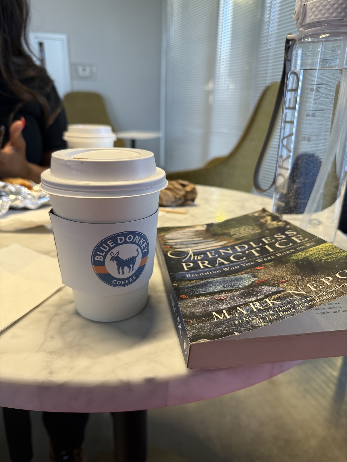 The space is quite limited with most of the seating at a cool wood slab table which does limit the outlets you can use for plugging in. There are also a few couches around the corner and high top seating by the window. Blue Donkey shares the space with the Gregory leasing office which means some foot traffic and noise from the leasing team on calls and in conversations. Otherwise it's quite quiet. There is also Google fiber WiFi available through the Gregory guest network which makes for fast and reliable...