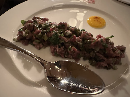 Tartare: Prepared tableside with an array of ingredients, but the result was overly busy. The meatâs flavor was overshadowed, and the waiter struggled to balance the proportions.