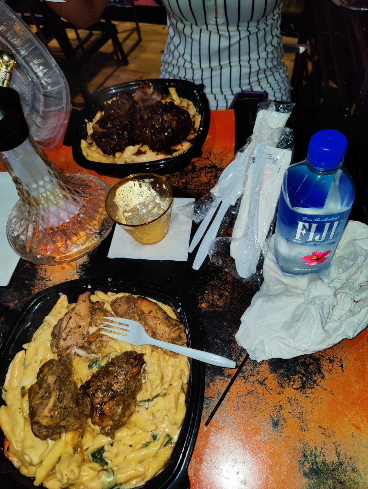You cant hire every big butt and a smile that walks in the door unless they actually want to work and have the experience. If you do, dont put them on your busy shifts or weekends. We had to stop the guy who was helping with hookahs to get our table bussed after we hate and a few rounds. It was 8 of us so we had about 20 cups and glasses on the table after a few rounds. The waitress never came to clean anything.