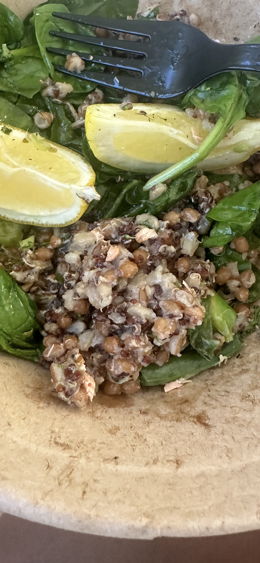 Read moreThis may be a great restaurant, I don't know. Do know that using door dash as delivery service sucks. Ordered from the brown bag website - and they apparently use door dash for delivery. Ordered "chowdah", Caesar with blackened shrimp, tots, and a beer. Delivery was to be in 30 min. Then it said 15... Cool! In reality it was 40. Was being delivered to local hotel I was staying at, gave both the address and name of hotel. Door dash texted to call or text the delivery guy because he was close - he didn't answer and mailbox full. Finally called me, he was parked across from the sign for the hotel. Could. Not. Find. It. Handed me the bag, and I should have looked closer before getting back to the room. Because this bag was obviously upside down on its journey to me. So eat in, don't get delivery if you want a meal from Brown Bag Seafood Co. Next time I'm in the area, I'll take a walk over. BTW - did call them to let them know NOT to use this driver. They were apologetic, but not much they could do. Pics attached of my chowdah all over the bottom of my bag, my upside down chowdah covered salad, and chowdah covered...