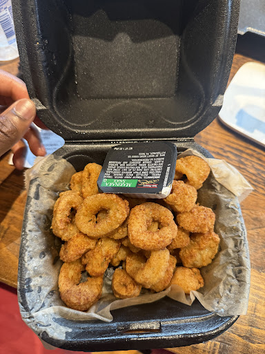 Despite what their branding suggests, this is not a dine-in restaurant. There’s no real dining experience to speak of—just limited counter seating and food served in styrofoam boxes with paper cups and disposable utensils. For the prices they’re charging, I expected far more. My 10-piece wings were $14.99—wings only. Fries were an extra $2.75, and a drink was $2.99 with no free refills. The food? Completely average. Nothing memorable or flavorful enough to justify the cost.