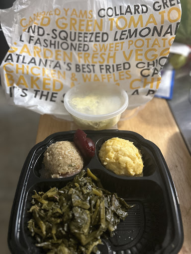 Thereās a sign on the door that say the inside is closed.. driving from McDonough I would have been very upset to see that if I had not had a reservation elsewhere. When I got home and tasted the food just to sample it before I had it for lunch the next day, I realized never again. The cornbread dressing was salty, the greens and potato salad were the best. The Mac and cheese wasnāt bad but a pinch more of salt/seasoning and it would have been over seasoned. Again, I went for the dressing and was disappointed. I did like the concept of the keeping you updated through the online ordering site. That was a plus.