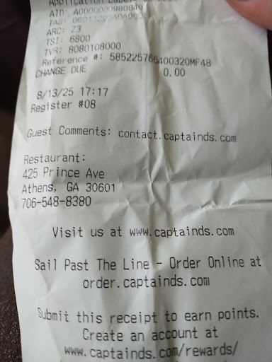 Read moreThey owe me a refund the lady told me to call at 3 for her to call the area manager to process my refund cause they gave the delivery drive 1 of my 4 meals instead of the entire order I called never got my refund and then they not answering the phone anymore a waste of my money never again!!! And yes I left my info on the contact form I even tried to order my food again on this time on Uber eats instead of the captain ds app but when I checked my app it said I cancelled the order which I didn’t. I really wanted my kids food. Now that’s over $60 captain ds from this location and the other one took from me. And I called like the young lady told me at the candler road location, she had me on hold for 16 mins and when I called back the phone went straight to voicemail this is terrible customer service at both I’ll never eat there again. And when I tried to call the Ralph David Location no one answered and Uber eats still haven’t gotten back.I even called corporate no one answered (I provided proof) so if they mess up your order don’t expect to...