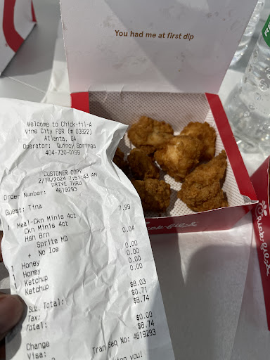 Read moreI went there tonight my receipt time says 9:14pm. I ordered a #1 combo with and extra sandwich and a hic along with a Cobb salad. I get to the window to get my order and the cashier whose name was Alexius and I quote says to me “ um what’s the name for your order” when I pull up to the window, first of all that’s not how you greet a customer it should be May I have the name for your order please or basically she should know my name when I pull up to the window, she reaches me both bags then my drinks, never even looks out the window really, does not say thank you have a nice day or goodbye literally. I think she should never work the window again because her customer service an attitude was so bad and she was so busy haveing a conversation with another employee about some boy that that’s probably why my fries are missing I’ve been inconvenienced by this restaurant three times within the last three weeks and I really do think that someone needs to look at the management here especially during the evening hours after 6 PM . I drive all the way home there are no fries in my bag, last week Saturday i went there if I’m not mistaken my order was over $35 got home was missing and entire sandwich, went there 3 weeks ago and was told to pull up to the aVip drive thru for waiting and sat for over 30 minutes waiting it was so bad they refunded my entire order. I said all of this to say that if someone is already going there and spending their money on the product it’s a big inconvenience of the customer to have to spend extra gas money to drive all the way back to the restaurant for the restaurants mistake and then when you get there they don’t even do anything but replace the food that’s missing they don’t offer anything extra for the inconvenience. I understand this is a new location and that is located on MLK but Chick-fil-A has always been held to high regard for their customer service this location has very bad customer service if I’ve had to go back to the restaurant three times within the last three weeks there is a lack somewhere...