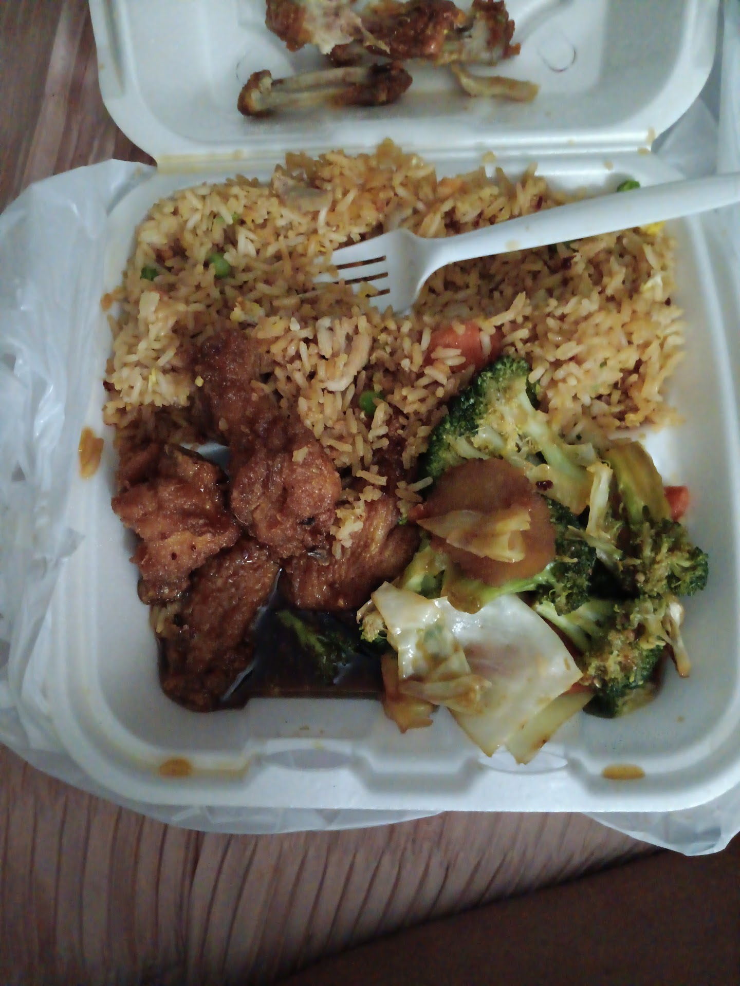ย ย ย Read moreI was given old food. The mandarin chicken tasted like it had been left in the warming pan overnight, and had become burnt and stuck to the pan. It tasted old and was super chewy. There were just bits and pieces of chicken, like someone had scrapped up bits of it, in an attempt to create a full meal. The braised wings were also old, so much so, that the wings had turned gray. It was obvious that someone tried to cover this fact by putting extra braised sauce on the wings. The inside of the egg roll was even gray, with withered old cabbage and had an odd smell. The entire meal seemed like it was put together from several meals that may have been half eaten or thrown away. I think because the order was placed during the open of business, that they gave me food that had been sitting out from the day before. Unfortunate for me; I had ordered this meal through postmates/ubereats, so I wasn't actually at the store to witness this disgraceful meal being set up. I wish people who just dont care, would keep their tired selves at home, and stop disgracing the public with their inability to do even the least moral thing. This place should...