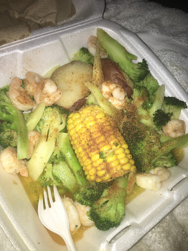 From my first and only impression, their take-out was nothing special. It seemed more like it was all just commercially packaged frozen food (sold by any grocery store chain) that was tossed in the fryer and then dropped in a styrofoam box. I wasnt at all impressed, but their prices should've been my first clue. I ordered my wings medium, which were a bit too spicy for me, but it's on me for not choosing mild. They were, however really scrawny, very little meat, a bit dried out and not at all tender. I only ate 3 or 4 of the 10 before i gave up on them. No bleu cheese or ranch dressing offered. My 30 fried shrimp were pretty good but only came with one cocktail sauce & one tarter sauce. Fries weren't all that... just very basic, unseasoned, unsalted frozen-to-fryer fries. I couldn't eat more than a few. Entree portions were exactly as described on to-go menu. A group of us ordered lunch and after seeing the grilled jumbo shrimp and steamed broccoli that one chick had, I wished I'd chosen that instead. It looked really good, but of course, i don't know how tasty it actually was. I probably won't order lunch from this place again. After pondering over the question of why they were so crowded during and beyond my lunch break, I can only guess that most of their business comes from regular customers who purchase seafood to take home and cook themselves, as well as offering the convenience of paying with EBT. They also do have plexiglass and wipe their counters often, and allow people to use the one-room unisex restroom...