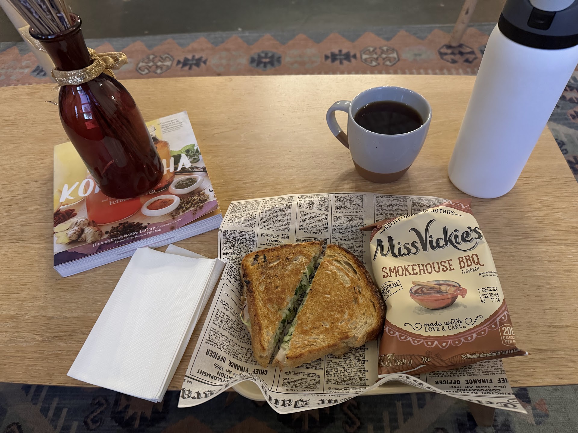 Read moreStumbled upon this place a couple months ago while looking for a place to kill some time and I have not stopped thinking about it since! The ambience was so cozy and classy. The whole place was beautifully decorated and curated with plants, art, and items for sale. I didn't look at the actual kombucha options, but everything on the food menu looked amazing and there were so many other types of drinks. I ordered a spicy turkey panini and an earl grey lavender tea. There was one girl working behind the counter who took my order, made it, and served it. I told her it was amazing and she said she made it with love, which I could tell