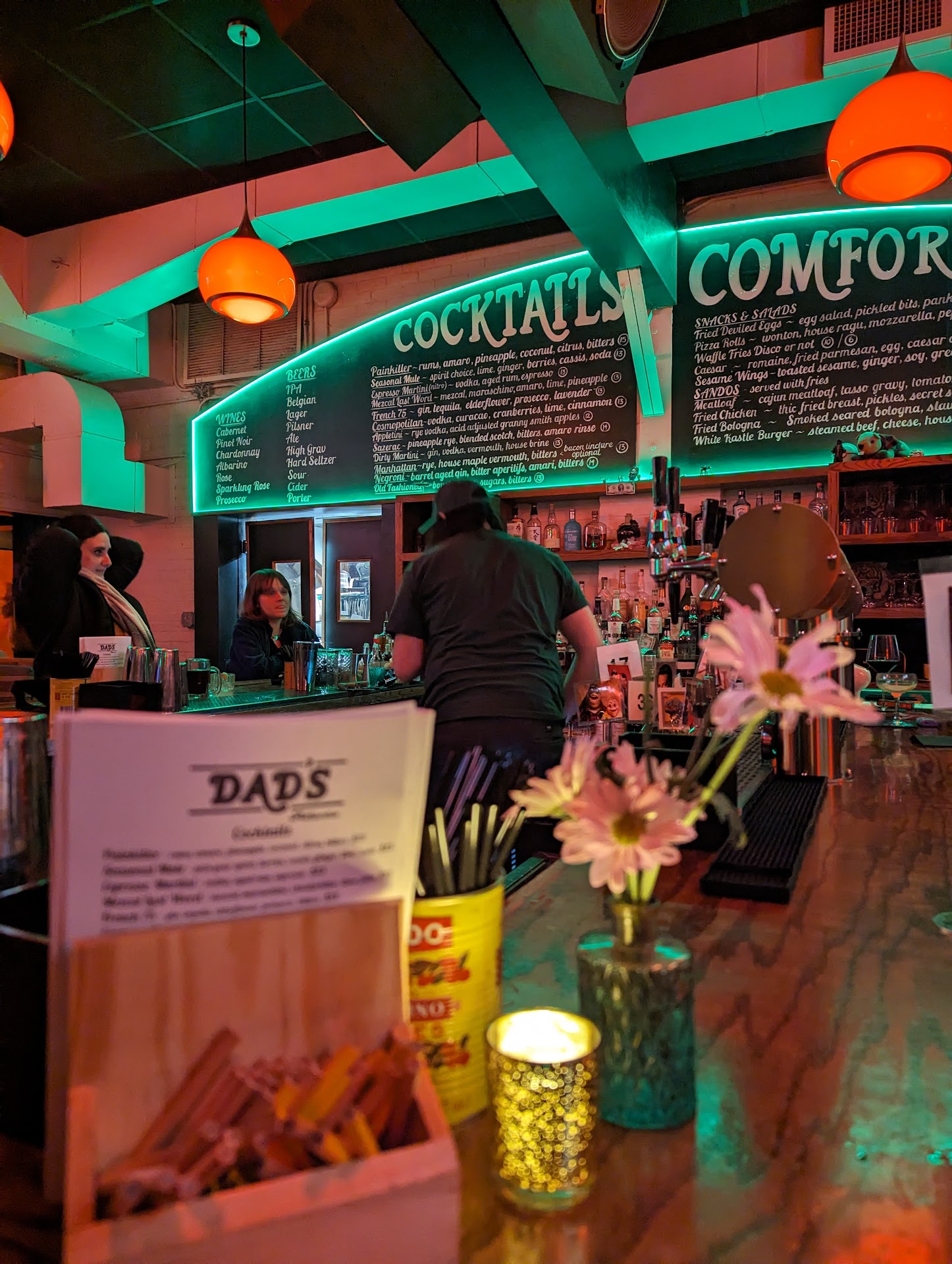 Read moreMy friends and I came over to Dad’s for a fun and festive night of holiday drinks. We had a great time until we had to close our tab. My friend realized after paying that we were mischarged for a bottle of wine that cost $45. We went back to the bar to dispute the charge and the bartender brought over the manager who accused me of ordering the bottle under my friend’s last name which is no where near my own last name. I never approached the bar the entire night and sat in the booths the entire time while my friend ordered our cocktails. The cameras can prove this. I was not a fan of how the manager asked me 3 times if I had not ordered the bottle under my friend’s last name. It really ruined our experience which had been great up until that point. We will not...