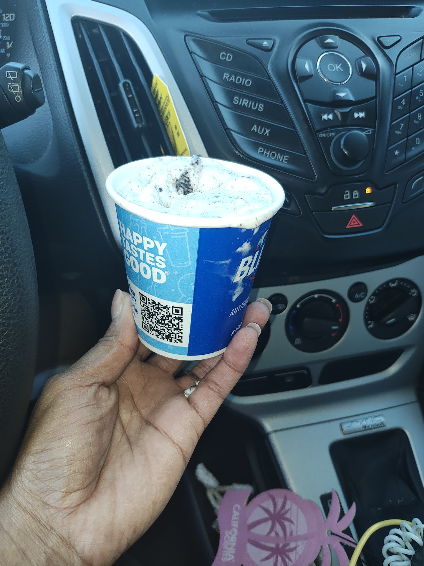 Read moreI was in here yesterday (a Wednesday evening) maybe an hour or two before close. All I ordered was the Superman blizzard that was limited edition for the new movie. Was super excited about it. I get there and order with my partner; the blizzard is literally the only thing we order. We sit waiting for 10 minutes and people come and go and get their orders. It took nearly 20 minutes and us going up to the counter to ask about the status of my Large blizzard only to find out it had been made and literally was melting on the counter. They gave it to me after it was mostly melted but I didn’t start eating it until we had actually left. It was so frustrating because there was literally no one in the building and the workers did not look busy at all. Door dashers were coming in and out as well and they were being served, just not me even though I wasn’t out of view from the counter. The blizzard tasted fine, but obviously had melted. The older lady who realized we hadn’t gotten it yet clearly felt bad, but the younger girl seemed to have...