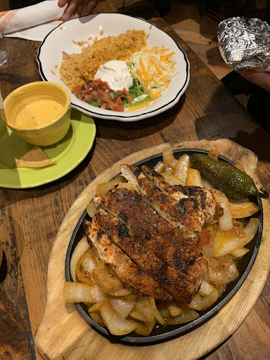 We ordered and split the chicken fajitas, and a chili con queso appetizer, which came with a plate of rice, beans, sour cream, lettuce, cheese, and pico. Starting with the positives: that fajita chicken is some of the best I’ve ever had. Juicy and flavorful- it’s a cut up breast. The onions were nice and seasoned/caramelized. Queso was good. However, the tortillas were a bit hard. The beans were way too seasoned. I don’t know how to describe it but it was just too much spice and not even in a hot/spicy way just overwhelming mix of flavors. The rice was also very salty. If you came here thinking it was going to taste like your local authentic Mexican, it’s not. There’s so many flavors, which is a good thing, until they go overboard and add too much of it or over-salt. I’m not completely dissatisfied with our visit. It was our anniversary so I did have high expectations for the night, but I wouldn’t come back or recommend it to a friend, given the price point ($27 for fajitas and $8 for that small...