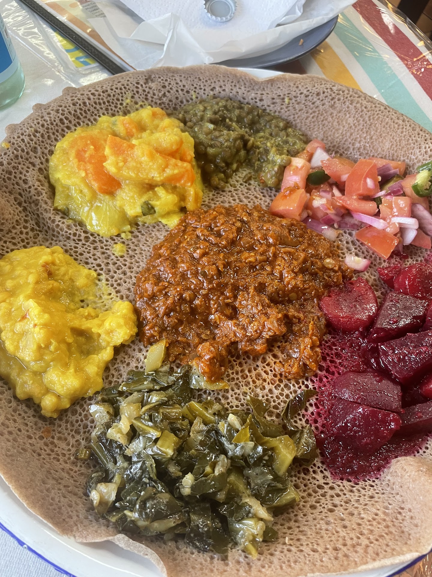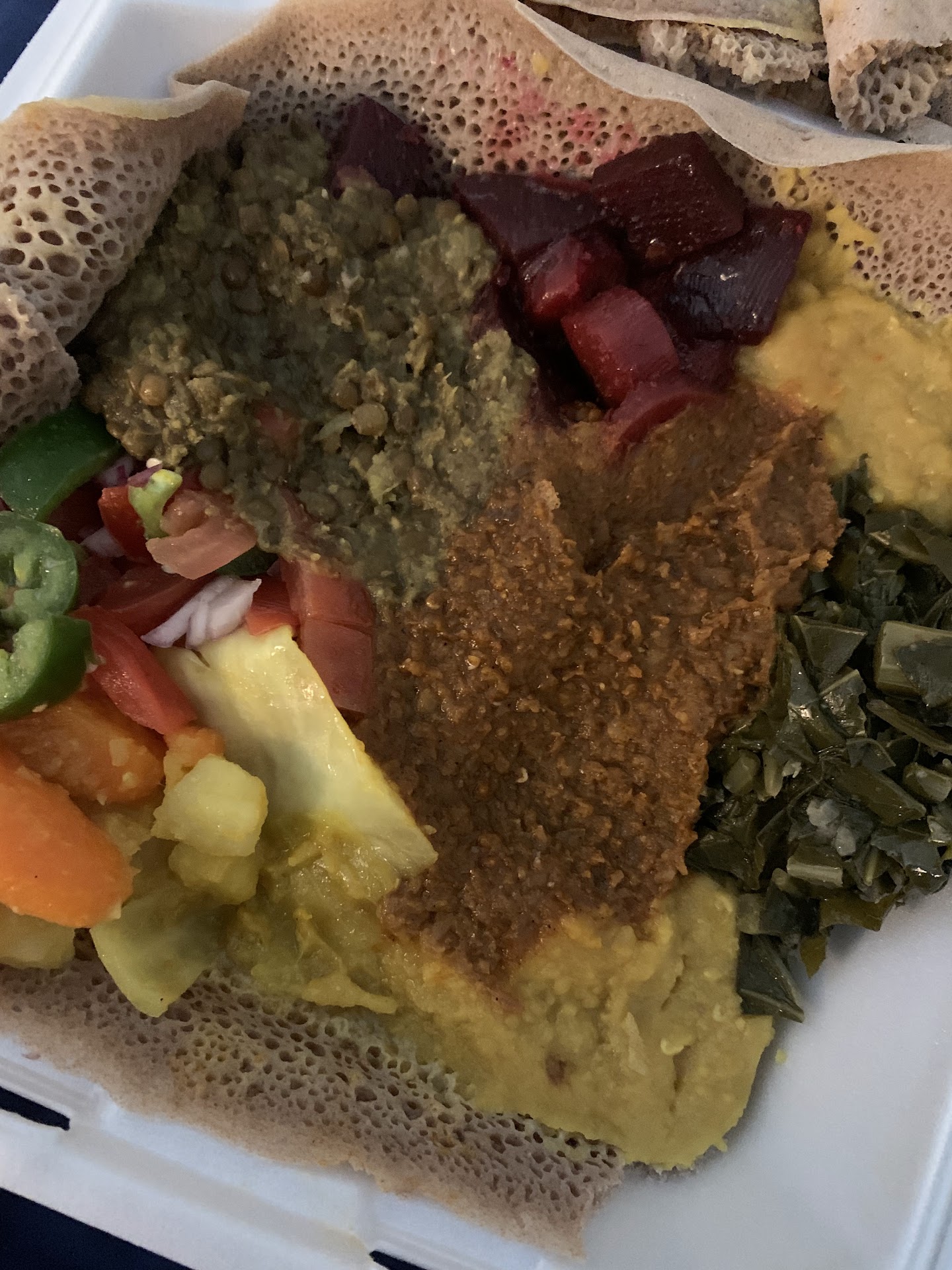 Read moreFirst of all, I think atlanta needs to raise the bar on food. I had some of the BEST ethiopian food when I was living in DC. But here in atl, this ethiopian food was …meh. I had a sambusa and veggie platter. The $3 sambusa was flavorful, crispy, and fried. The sambusa would have me coming back… but the veggie platter was meh.. and that’s crazy because it looked so good but looks can be deceiving. I did like the fact there was beets because not many ethiopian places serve beets, so i love that. The red lentils were cool, i could definetly taste the seasoning in them, but i tasted the cinnamon and it was a little overpowering but they were still decent. Wasn’t too crazy on the collard green. The cabbage was just ok. The green lentils tasted freezer burnt so they obviously weren’t fresh. The tomato salad was nice and fresh.. this veggie platter did not wow me. My rating is only based on food. For this place to have this many stars, it’s obvious people here don’t know what real good food is. But the portion size was nice compared to other ethiopian places i went to, I definetly had to use a to-go box. The woman here was lovely, I enjoyed her and she provided me good service and it was nice knowing this was a small owned...