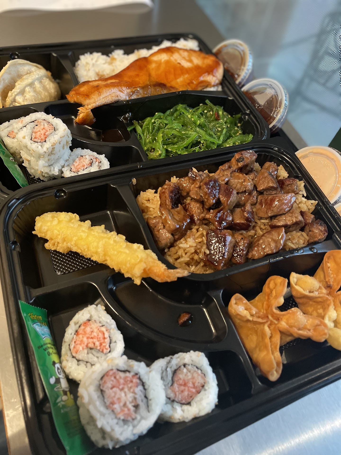 There were a few minor dings here and there. The rolls, for instance, aren't true California rolls since there's nothing inside except imitation crab meat. My husband deigned to order a side salad, which turned out to be a clamshell Styrofoam container filled with chopped iceberg lettuce and a few julienned carrots throughout. No other veggies, no dressing, just lettuce. But now that we've learned our lesson, I hope that keeps you from making the same mistake and ordering from the more exciting parts of their menu. Anything with the teriyaki sauce would probably be a good bet. It's isn't too sweet and has a fair resemblance to the Sarku teriyaki one might find at a mall food court (the pinnacle of teriyaki in my book).