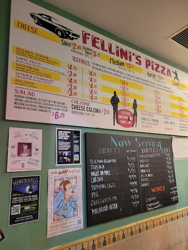 Read moreThe closest Fellini's is an hour away from where I live. When I'm in the city, Fellini's is my special treat. My family and I usual order by the slice since we all like different things & it's always phenomenal. Today, I'm dining in with my husband, so we got 1 pizza...1/2 vegetarian & 1/2 meat lovers. When our pizza was brought to our table, I immediately noticed that the meat half was skimpy. Of the 3 pieces of meat pizza, only 1 looked the way that it should & the other 2 slices barely had any meat on them. My husband & I brought it to the attention to the young lady who brought the pizza out to us & she told us that the meat was just hidden under the cheese. For the sake of argument, let's assume that I didn't know what to expect. But for the sake of common sense, I knew there was no meat there before the began to move the cheese around with my fork. Then she said, "oh, the toppings just slid around when they sliced it" So you're saying that the toppings slid from under the cheese to 1 other slice without displacing the cheese as well? Make that make sense. Same great taste. Much lower...