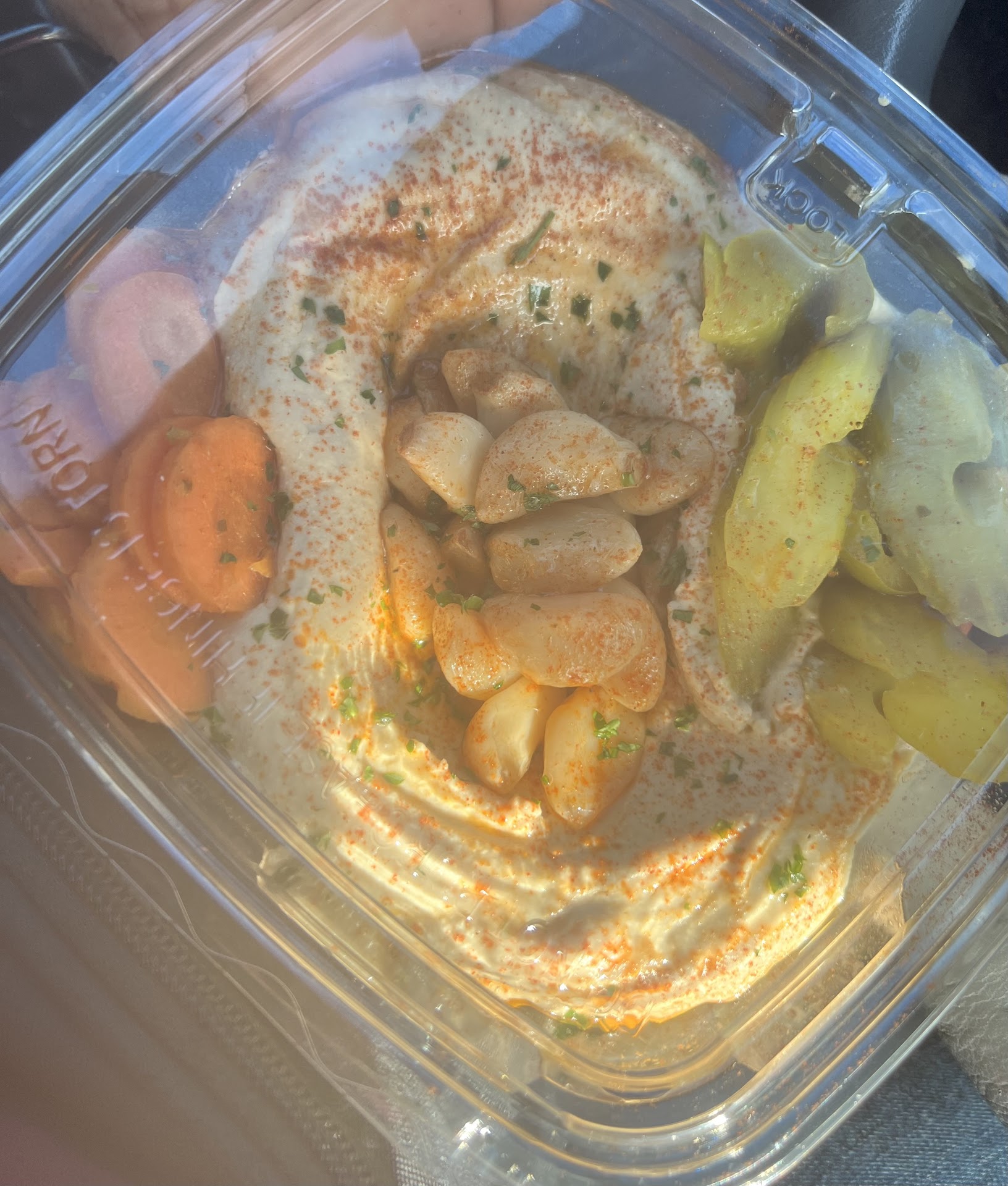 My favorite of everything was the hummus bowl.Definitely recommend. I did not even come to get the hummus bowl but after being provided a sample, I could not resist. It was delicious. The hummus alone is really flavorful. However, it was worth it to get the bowl for the bread and veggies. The fresh bread smelled amazing and was seasoned. The pickled vegetables really set the hummus apart. The flavors are spectacular. I added garlic confit which isn’t do much. Next time I’ll try the chicken on it.