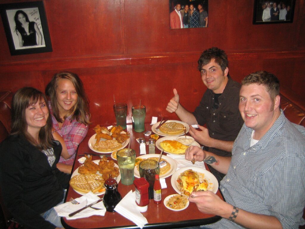 Food: Comments on the food have ranged from "best fried chicken I've ever had" to "over-hyped frozen food" it seems. We thought the food was pretty good. Honestly the food didn't cause a soul-altering experience in either my wife nor I, but it was well-prepared and it was tasty. My biggest like was the fact that they serve salmon croquettes which I've never found offered at a restaurant. (Typically I only get them when I cook, or my mom does.) And they were deep-fried and great. With grits, cinnamon raisin toast, and an apple cinnamon waffle thrown in, I had a wonderful meal. Of my wife's fried chicken, collard greens, sweet corn, mac-n-cheese, and sweet corn muffin plate, I tried the former two things and I thought they tasted great as well. (She loved all of it, but extra kudos to the chicken.) So for us, the food met the mark also.