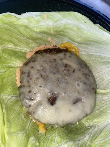 Patty: Beef Temp: Well Done Bread: Lettuce Fixings: Mustard, Ketchup, Mayo