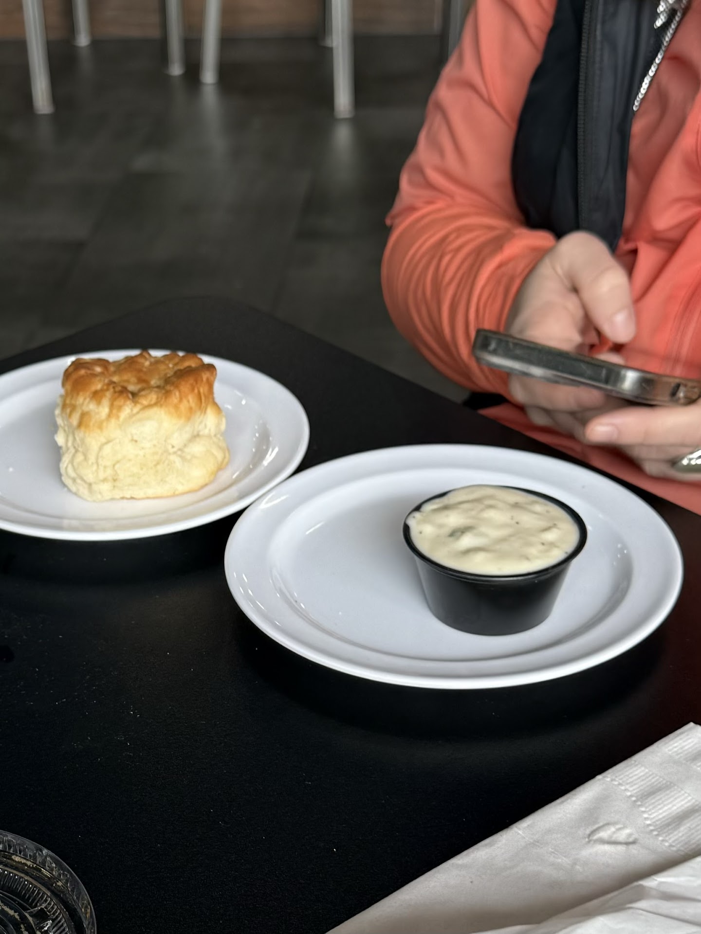 My coffee came out incorrectly & I waited 15 minutes for the new one to come out. My food had already been delivered at this point. Waters were never refilled. I ordered biscuit & gravy meal for almost $15! See the picture for what I received. Only a side cup of “homemade gravy” and 1 biscuit?! Very confused, I asked the waiter if this was the entire meal portion, who had no idea. They made me the meal portion and brought it to me in a to go container. & I am not joking when I tell you… this is NOT gravy! This literally tasted like Tostitos queso blanco from the jar with pepper added to it. The furthest thing from “homemade gravy.” 🤮🤢My friend ordered an omelet for 10 dollars which came with a literal slice of kraft cheese on the top (up charged for a $1). & they refused to make a fried egg instead of boiled egg for Avocado toast. Again, the servers were very kind and extremely apologetic but the food was laughable! The only time upper management (or owner) came to our table was to laugh at me attempting to put milk in my coffee (the wrong coffee btw). I thought I was literally being punk’d. With all of this, they still made me pay full price. Didn’t offer a discount or anything for them co topically getting orders incorrectly. $20+ for a coffee, dry biscuit and jarred queso that I received after my table finished eating in a to go box.