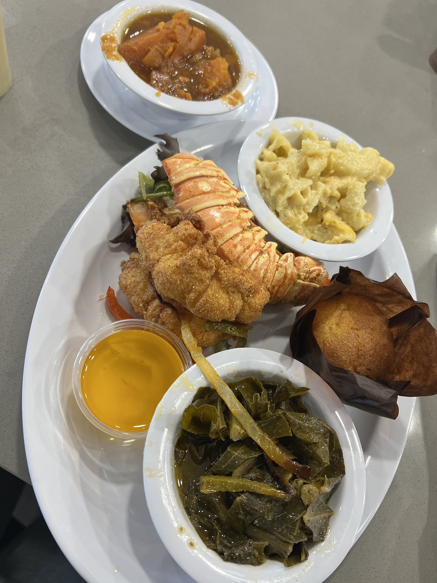 MAINS -my sister: the red snapper and gritsâperfectly fried snapper and deliciously creamy grits with a delectable sauce that paired beautifully with the fish and grits. (5/5) -my brother: chicken sandwich biscuit with chicken sausage gravy (4.8/5) -my cousin: curry shrimp and gritsâthe flavors were pleasant and again the grits were superb, it was a bit too much curry sauce in her opinion so it over powered the flavor of the grits but the shrimp was perfectly cooked and really good (3.5/5) -me: waffle and eggsâwaffle was really good and i actually liked the eggs they didnât taste like typical restaurant boxed eggs. the turkey bacon was whatever but the home fries were nicely cooked crunchy on the outside soft on the inside.