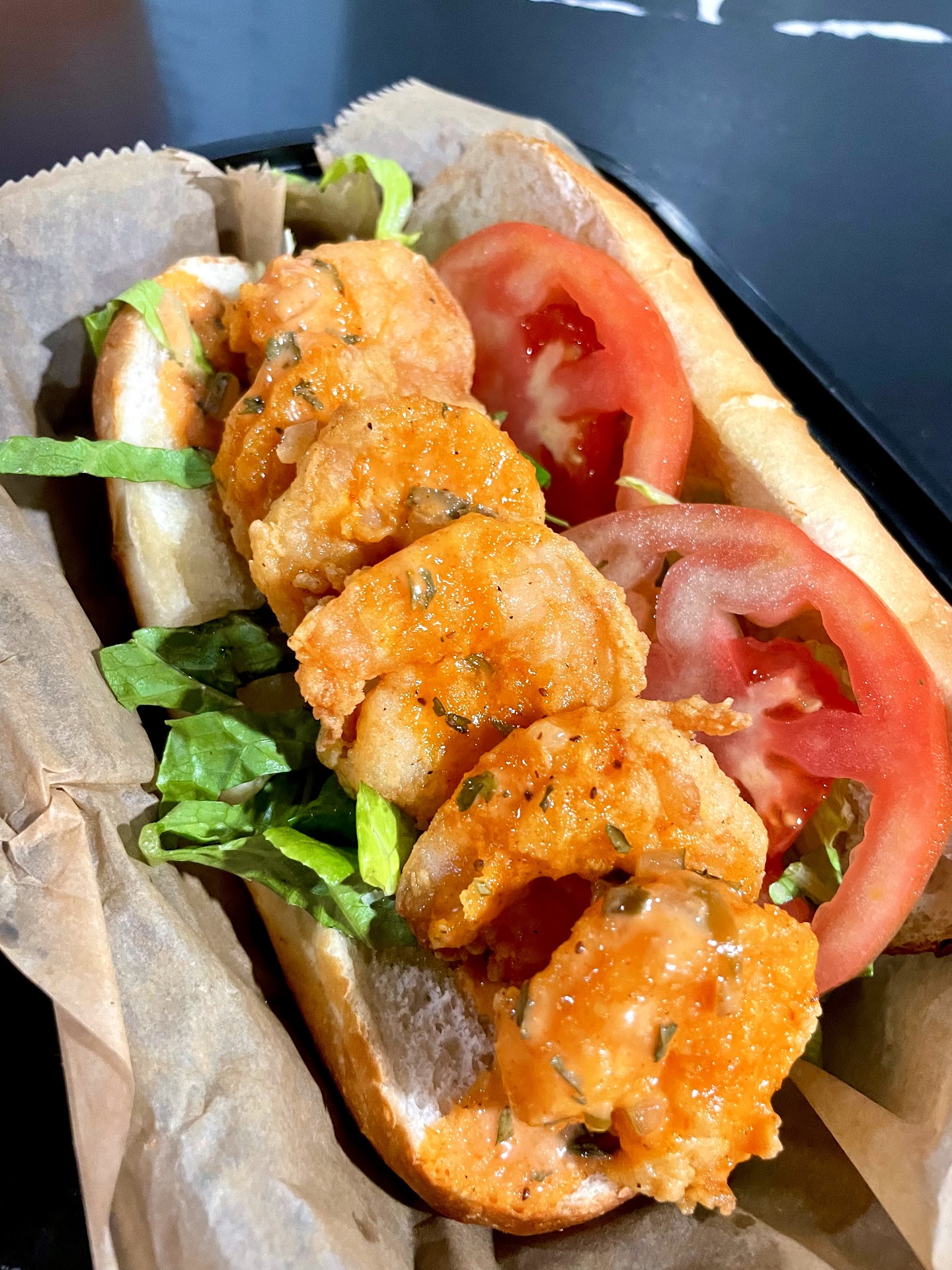 Hippin Hops specializes in oyster dishes, and they also offer many other items. And of course, they have beer!! The house beverages includes a stout beer, several lagers, an IPA, a sour, and numerous hard seltzers, among other concoctions. I tried a delicious peach sour and my friend ordered the watermelon seltzer, which boasts a hefty 10% ABV. For dinner my friend had the catfish nuggets with remoulade and sweet chili sauces (Shrayâs suggestion), and I ordered the shrimp and grits. Now, I am particular about my grits. They are supposed to have texture, hence the name âgritsâ! This dish was pitch perfect, down to the grits. The shrimp were large and cooked right (not rubbery!), the roux was excellent, and the grits were exactly right. There was so much food, I took some of the grits home and will be happy to have an on the go breakfast in the morning. My friendâs catfish bites were hot and crispy, seasoned right, and the catfish was tasty. We even met a couple coming out after dinner who raved over the oysters dish called âThe Bossâ (shrimp-topped baked oysters) and a hard punch drink she was still finishing up. The service was wonderful, the food was great and came out quickly, and the manager knew his stuff (thanks, Shray!).
