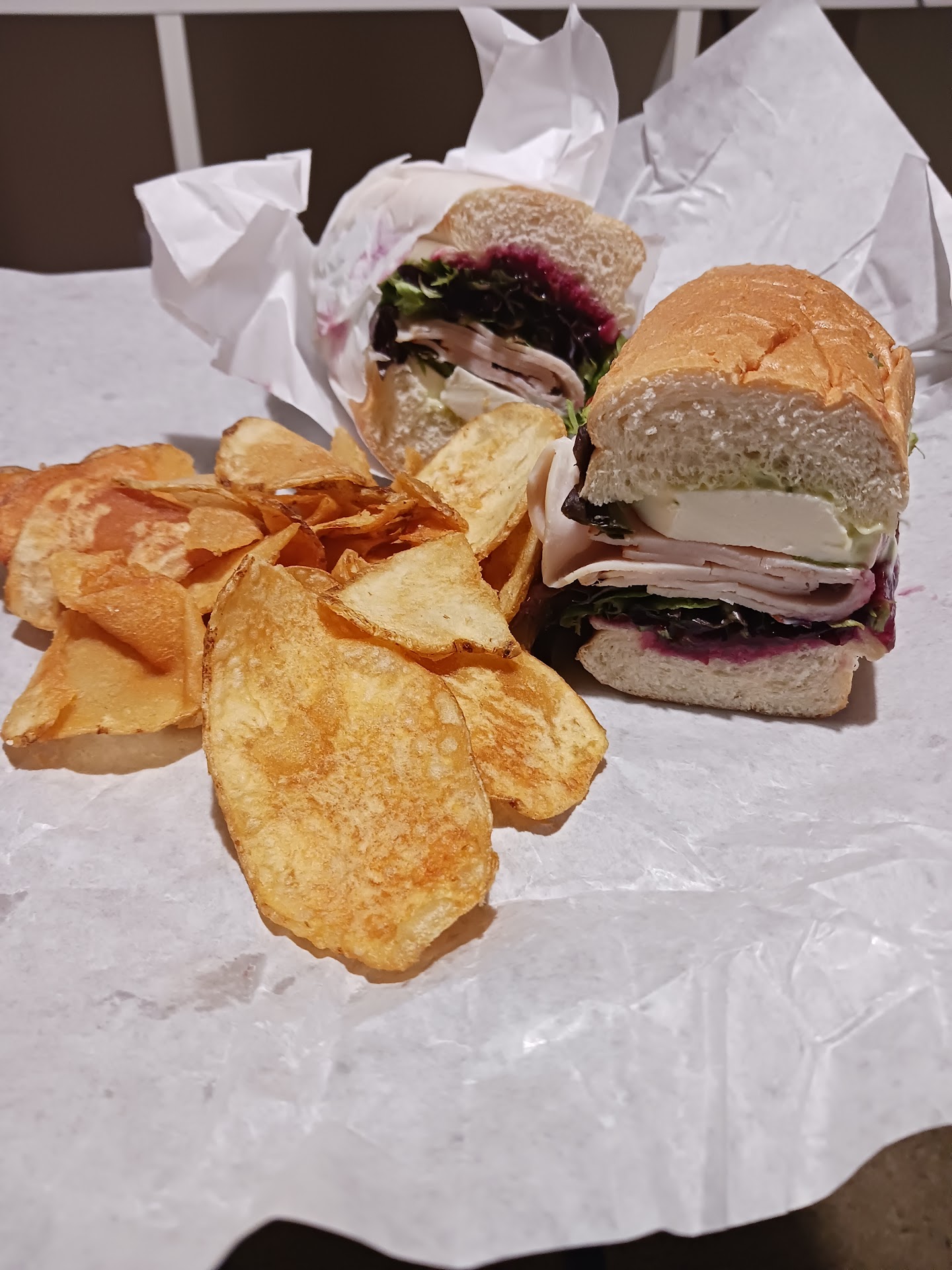 🤤🥪 The Turkey Stack 🦃 is my new 🥇FAVORITE🥇 sandwich in all of ATL (sorry Victory). The inner side of bread is perfectly toasted, providing considerable crunch and a carmelized flavor. The cranberry relish adds the perfect amount of sweetness. And I really enjoyed the thick slice of fresh mozzarella. This sandwich reminds me of the ones a shop that used to be in Star Provisions on Howell Mill used to make. I've missed that place ever since they closed, and I've finally found a worthy replacement. I also highly recommend the Meatloaf sandwich. The pimento cheese and (turkey?) meatloaf play so well together 🤤. We were expecting eggplant and avocado on the vegan Captain Planet, but what we got had chickpeas and no avocado 🥑. It was really tasty, but just know that the vegan sandwich ingredients may differ from the Insta Menu 🤷🏾♀️. The Classy Chicken Salad 🐔 🥗 sandwich is good with tender chicken and a lovely dill and herb flavor, but I found it to be VERY salty 📈🧂. The house made sea salt chips are simple and good. I hope they offer additional flavor options in the future (like BBQ, garlic, honey mustard, sour cream and onion) 😊🤞🏾.