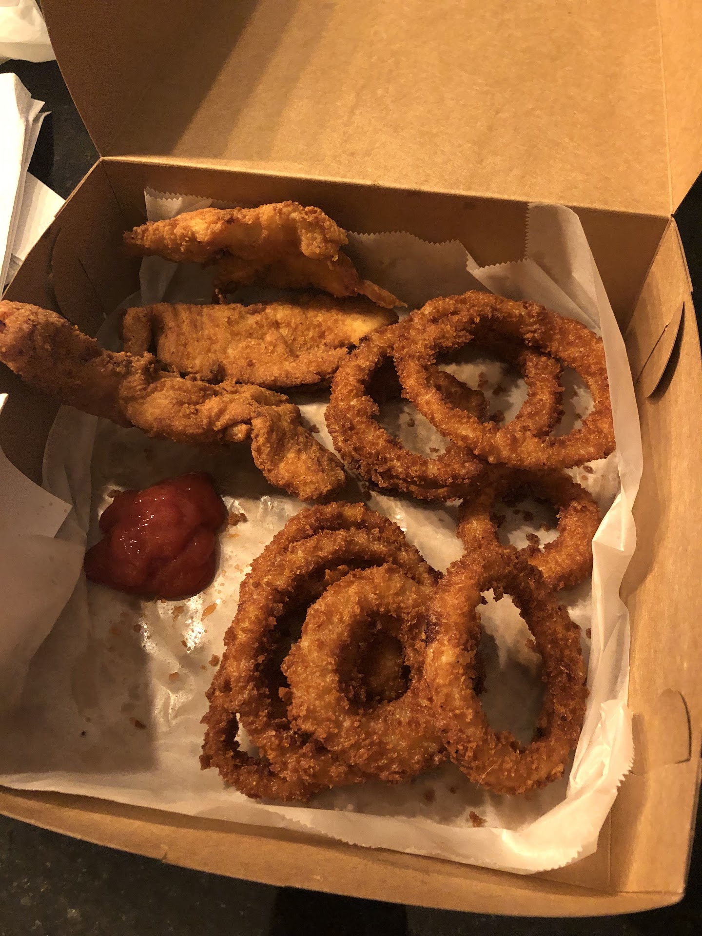 Read moreI have tried to support this local business and all but the first order have been terrible. I wanted to give them another shot but this is their chicken fingers with slaw $14 (notice the missing slaw and only 3 fingers and a ‘full order’ for onion rings. There are 9 onion rings. For $10.