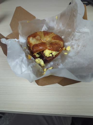 There is ample seating for you and your coworkers 😉. Usually they have light music in the morning and no wait at 8am when they open. There is a variety of food to choose from, my favorites are the croissant sandwiches and the breakfast plates which come with scrambled eggs, toast, meat, and grits!