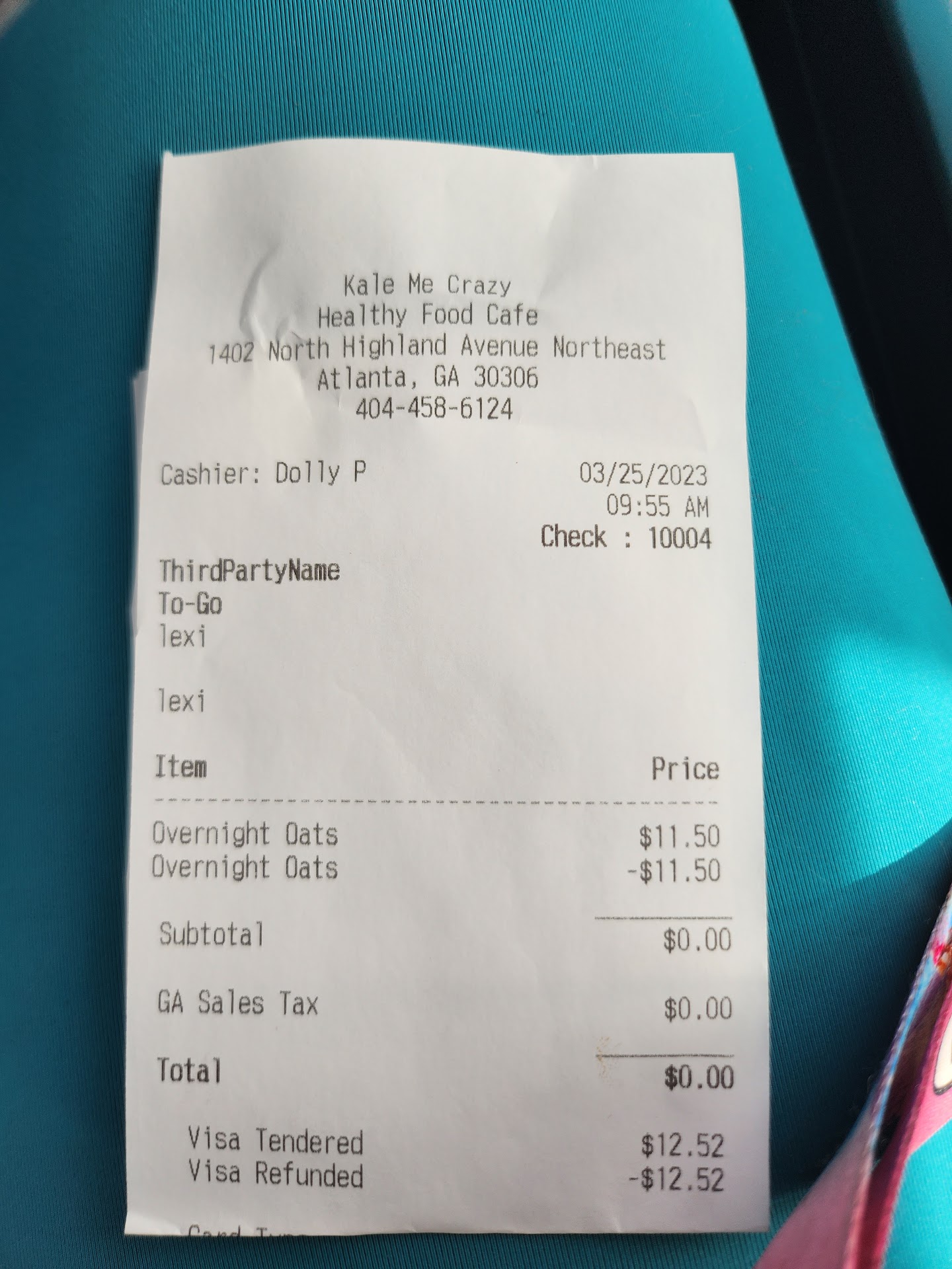 Here lies the receipt of an order i didn't get. I came to this kill me crazy from Stone Mountain, Georgia, to get my overnight oats. 1st time coming to this organization always go to the one in decatur. I chose this 1 today, and I did not get my overnight oaks, and that was a 34-minute drive. Yes, they gave me a refund, but typically, i wanted to spend my money, i didn't come wanting a refund. I did want breakfast. Not to be super upset, but have you ever wanted something so bad that nothing else would work until you got what you had a taste for ? Of course, they ask. Did I want something else but when your mind is set on something you truly want. Nothing else. Can end that craving 😫 So with that being said I give them a rating of two stars, one gold star for the atmosphere and the clean smell, another gold star for them refunding my order and trying to ask me did I want...