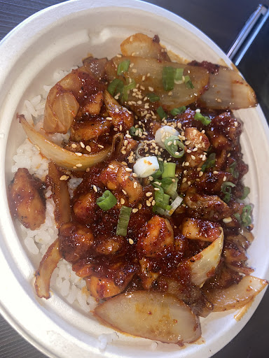 I decided on the Chicken Bulgogi Bowl - 12 oz chicken in fruit based soy sauce over rice⌠The dish is simple by design but elaborate in flavor. The profile fusion of the spice accompanying the fruit based soy sauce is absolutely mouth pleasing. The chicken was moist and flavorful and seasoned with a spice blend that fit the fusion theme of the bowl. The portion was perfect for the price and had enough for me to take some to go.