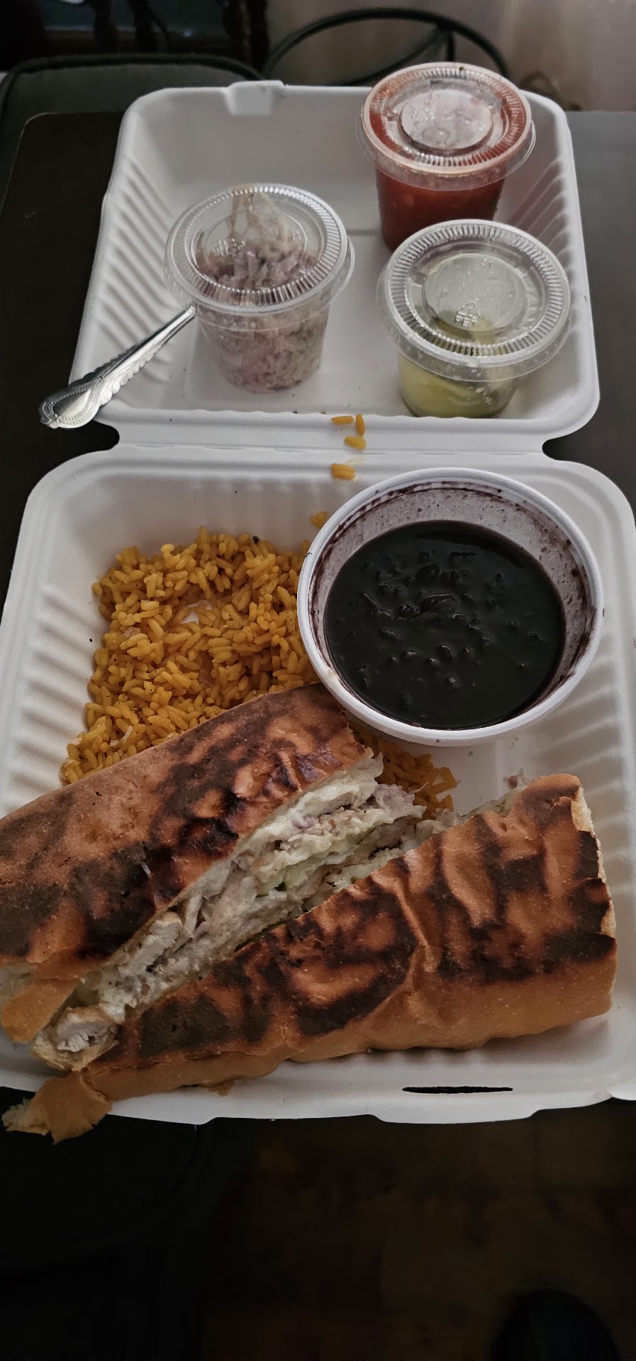 Read moreThis was my 2nd visit to this location, and it was the best! This time, I kelp it simple and elected to go with the chicken cuban sandwich and churros with the chocolate sauce! To my surprise, the sandwich came with black beans and rice, chips and salsa! OMG, the black beans and rice were the bomb and season to perfection! The chips were cold but I put them in my toaster overnight and they heated up nicely! The salsa was full of flavors despite being a bit on the waterly side! Now, the sandwich itself was a masterpiece when it came to taste! Just like the black beans and rice it was the bomb and paired very well with the extra pickles that I requested! Now the churros for me were a bit on the hard side and the chocolate sauce tasted more like chocolate pudding instead of a sauce! I had enough food to get me through three servings! I can see myself going back and trying another sandwich with the black beans and rice! For me, the key is keeping it...