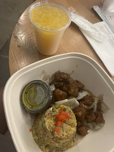 The previous times coming to the works food hall, I walked by this place. Something made me stop and we decided to try the Mofongo bowl with steak. The steak was fresh quality steak. I wanted more portion, but I understand charging $27 when the steak was that fresh and quality. Maybe id feel better at $24 or if they added a side of beans. I’ve tried Mofongo at different places and This was the best Mofongo I’ve tasted. The texture was perfect consistency and not dry like I’ve tasted other places. The guy at the register and the chefs were all nice and their kitchen space is very clean. Simple menu That I feel I’d want to try everything on there so I am marking this as a favorite in this food hall along with the empanada place. The Mofongo comes with a butter sauce and a broth to help the texture and flavor. The broth doesn’t have much flavor at all, but it helps soften the Mofongo closer to a mashed potato although the plantains hold their texture. I didn’t need the broth, but the butter sauce was great. Stir it and pour all of it out as the flavor settles to the bottom of the butter sauce. They also have a sweet and spicy sauce That’s great as well. The bowl was so good that I ordered the veggie eggplant bowl that at $16 is a wonderful price. This place is a...