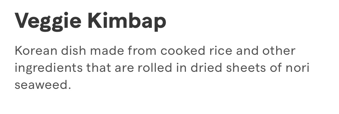 A few minutes later I got another call. It was the same person, saying they could not refund us the $6.99 because the Veggie Kimbap has meat in it and we did not specific that we didnāt want meat in it. Of course I was confused. Nowhere in the description did it say it included meat, and one can assume that Veggie meansā¦.veggies.