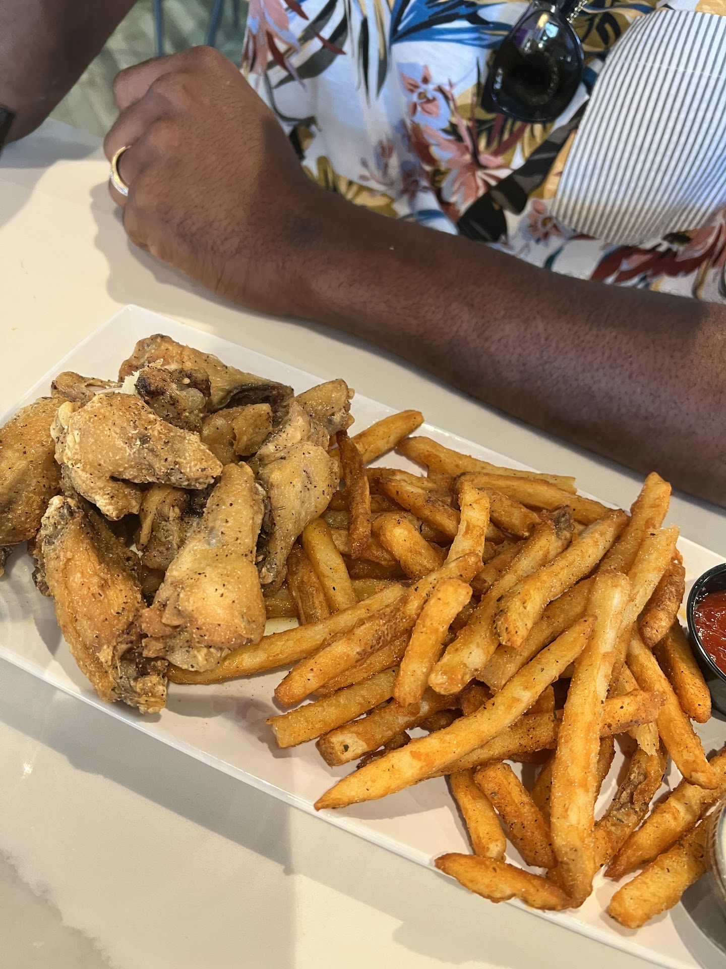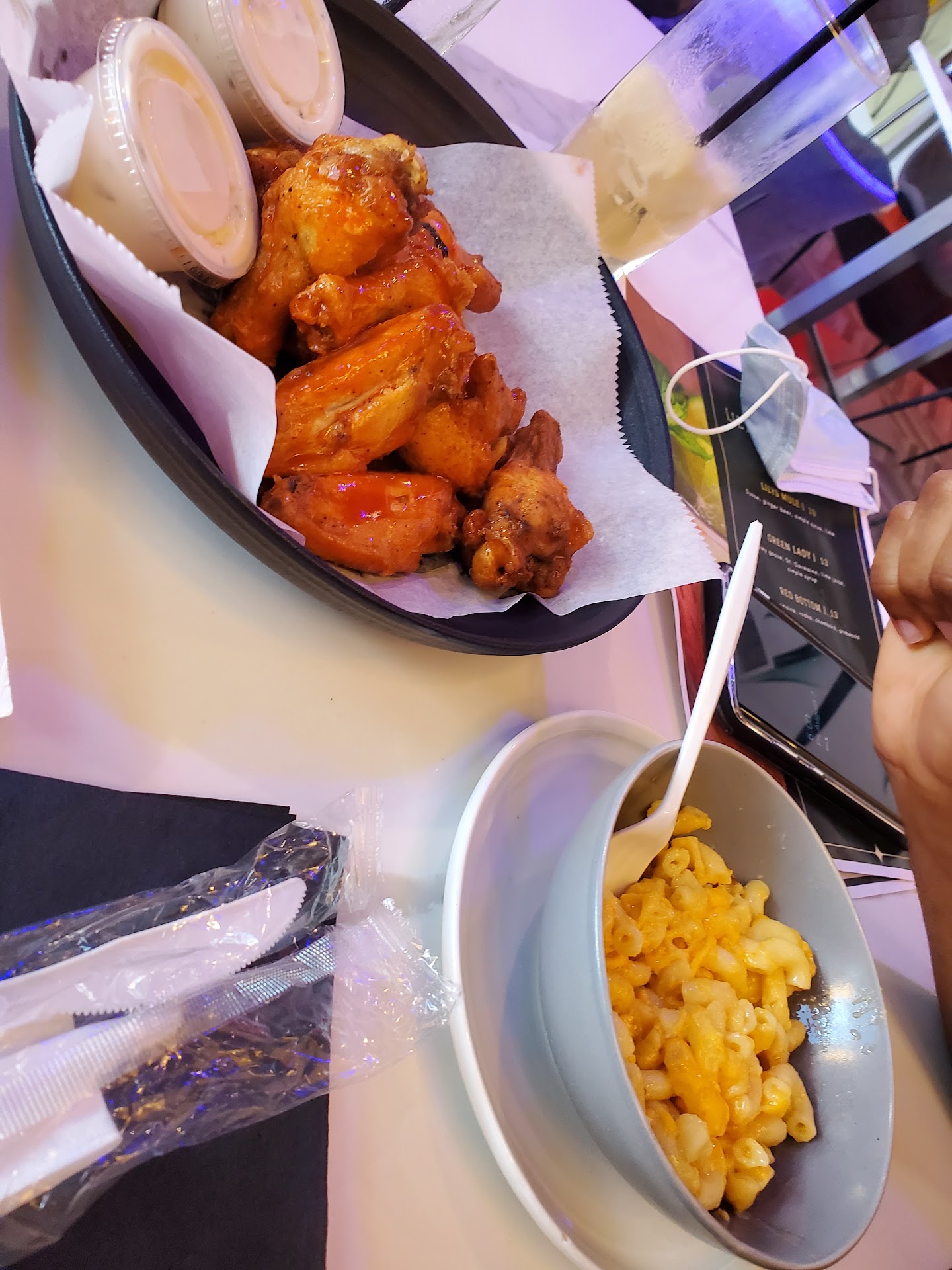 Read moreI will give it up for the ambiance, vibes, music, and the appearance of the establishment. That was the very nice part. I was really looking forward to it. The first thing I noticed was that absolutely no one was wearing a mask... the manager, cooks, waitresses and bartenders... NO ONE. The service was fantastic from the jump with Brianna as our waitress. She was very helpful and pleasant. We placed our orders and got stuff off of the happy hour menu... wings, drinks and Mac and cheese. The wings were great and the drinks was strong, which was a plus! The mac and cheese was nothing unique though. Nothing worth raving over... We enjoyed our time there then we get our bill (pictured in this review). How does this make any sense at all?! We ordered four happy hour food items ($24 total before taxes) and three alcoholic beverages ($19.50 total before taxes) and then the total ends up being $56.70 (with taxes and an unknown mandatory gratuity for TWO PEOPLE during happy hour 🙄). After doing the math, it was like they taxed us both as individuals and then did 20% gratuity per person or something.... it was like being charged 40% of the $24 & $19.50 added together.....At that point I had really only figured it out after giving my card so that is on me. The business showed up as an AD on my IG feed so I was excited to try a new black owned spot....but I will no longer patronize this establishment because of the surprises that came with the charges for the food and alcoholic beverages. There are other establishments (black owned or not) that do happy hour during the week that don't pull stunts like this... I learned that a Ghanaian man owned it and I wanted to support a fellow African and black owned business but mmm mmm I will NOT be coming back. Go here if you got money to blow... you get food worth maybe $30 but the bill ends up being $45-$50 for...