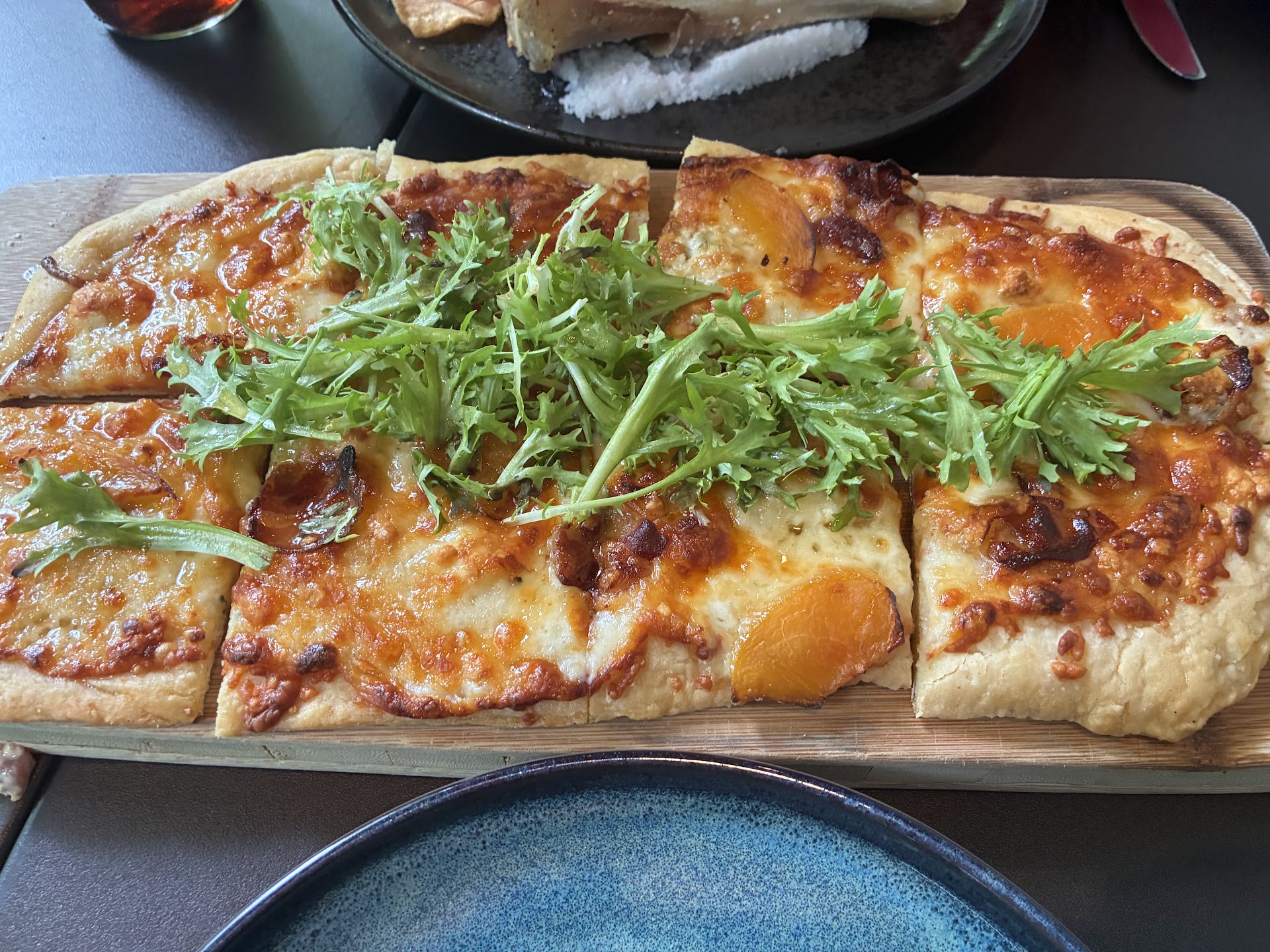 Next appetizer we had the poached pear/coppa de corse flatbread, which is basically pizza. This dish is incredibly good. I can say Iām not sure if there was a pear flavor, itās hard to describe the flavor really, but it was incredibly fresh and tasty with a very light crust, topped with arugula. Really enjoyed this āpizzaā.