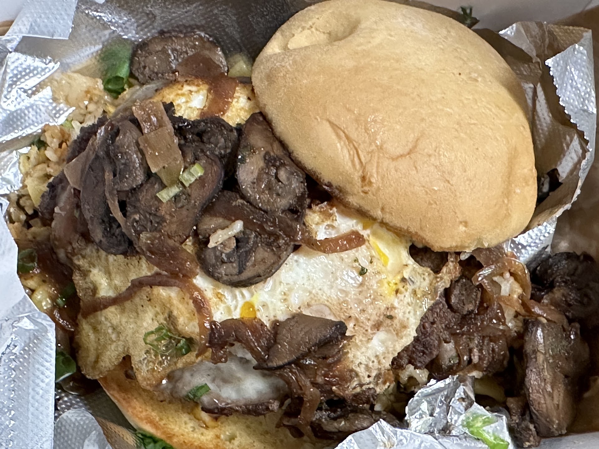 The burger is glazed in a teriyaki sauce and the bun is so soft it is if a Hawaiian bun and Wonder Bread bun had a baby...this is that bun!