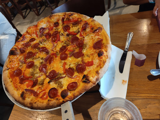 Read moreI don't like leaving bad reviews but hopefully this will be more like constructive criticism. It was a cute restaurant the kitchen staff was rocking and rolling. But unfortunately the front desk, manager and our server created a poor service vibe. When we checked in we were told half an hour wait even though we sent someone to check us in they said we all had to be there. There were at least 8 tables open but they were on a wait. When asked the front yound lady she said they didn't have silverware and they were rolling them. But even after rolling silverware the tables still were left open. I thought maybe they were short staffed. We had passed our given wait time and we were still no called so I thought it would be helpful to start getting out kids orders in. I took all the kids drink and pizza orders so that when we sat down we could start the kids food. I mentioned that I had done that to the front desk young lady and she said that we couldn't put the kids order in first. And that we would have to wait for everyone to sit down and order. I told her it would be better to get the kids first because we were a large party and sending so many orders at once the kitchen and pizza oven wouldn't be able to keep up. Thus made the young lady very upset and she said she wasn't going to talk to me anymore instead pointing to someone else from our party to discuss seating with. After sitting down I gave our server the order for the kids but he didn't put the order in until he took all the adults as well. Unfortunately the adults food came out first and the kids had to wait a while for their pizza to come out. It was very frustrating and we felt as though the service was poor maybe because of the front desk interaction or maybe because this manger, front of the house staff just want prepared for the volume. But regardless of the "busy" time at minimum Service doesn't cost anything. Even the kitchen manager came out to try to seat some tables. He seemed much friendlier than some of the front of the house staff. So hopefully they can get through the poor service because it was a cute place and...