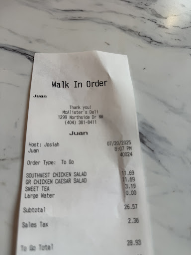 Absolutely TERRIBLE experience! The customer service at this location couldnât be worse. Itâs disheartening because this was my first experience at any McAlisterâs Deli, and I will not be returning. I made my order on the night of 10/22. Unfortunately, it was past the order deadline for the day. I was unaware of that. Once I got the email confirmation and it stated that the order would be ready on the morning of the 23rd, I drove around to the drive through to attempt to cancel it. The gentleman, who happens to be the only upside to this experience, apologized and told me that they wouldnât have access to my order to cancel it until the next day. Because I expected my order that night, I was in no position to get it the next day as I knew Iâd be at work. Knowing that, I made it my business to contact the store the moment they opened in hopes of canceling. To my surprise, I got no answer. In fact, each time I called that day, I got no answer. I then reached out to customer care who submitted a request on my behalf for a refund and told me the process would take up to 72 hours. 72 hours passed, so I reached back out to the location. Luckily, I was able to get someone on the phone who told me the GM was on the way to the bank and would reach back out to me when she returned. The GM, goodness gracious, had the absolute WORST attitude ever. She was rushing me through the conversation when she called as I was trying to give her information regarding my order. She mentioned having access to cameras and how everything that happens at her property goes straight to her phone. She treated me as thought I was lying about my experience. She asked for a case number from customer care which I did not have, but am sure she did since she knows everything. However, I obliged and reached back out to customer service for the number. When I finally got ahold of customer care, I spoke with a lady by the name of Megan who informed me of the number and also told me that my case was closed by the store. SO IF YOU KNOW NOTHING ABOUT MY ORDER OR THE CASEâŚWHO CLOSED IT WITHOUT ISSUING ME A REFUND?!? I DID NOT GET MY ORDER. I am HIGHLY upset as I type this review today, 10/30 without my refund or even so much as a store credit for the order I placed. To put it straight, this place stole my money. !!PLEASE AVOID...
