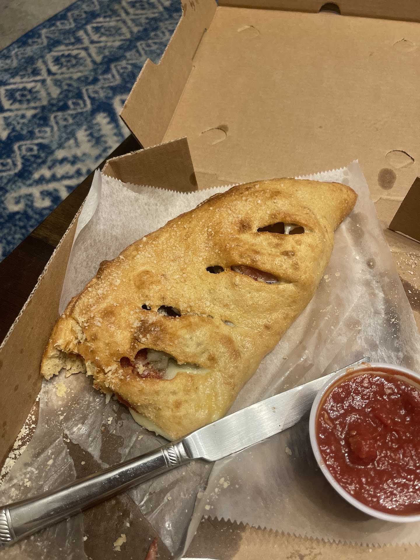 Took over an hour to get my calzone to go order. No because it wasn’t ready because nobody bothered to take the box from the oven and put it on the pick up window. I sat there for almost an hour it took 15 minutes before anybody even acknowledged me they didn’t checked on me twice but never once bother to see if the food was done they just asked me have I been helped. Finally after an hour I asked if there was an update on when I can get my food. The girl goes in the back comes out and goes oh yeah it’s been sitting on the oven. Should be clear I probably only needed to wait 10 minutes instead I waited nearly an hour so that I could have a dried out over cooked cold calzone that I paid $20 for. I’ve could’ve gotten twice as much food for half the price from Domino’s and not waited. Ridiculous.