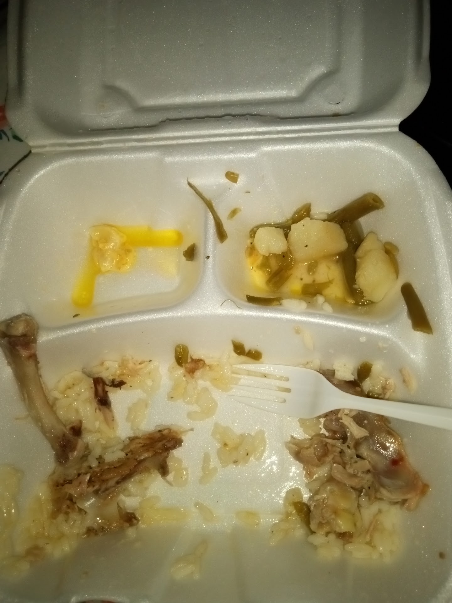 My only comment about the food is that because it comes out piping hot (which I love) it burns the styrofoam containers which resulted in particles being broken into the food. I have “the itis” now.