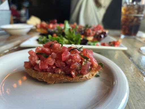 I attached a photo of the limp, flavorless bruschetta that looks the line cook stepped on before serving. Didn't take any other pictures after that because of how upsetting the whole experience was (and being preoccupied swatting dust away from our food and drinks).