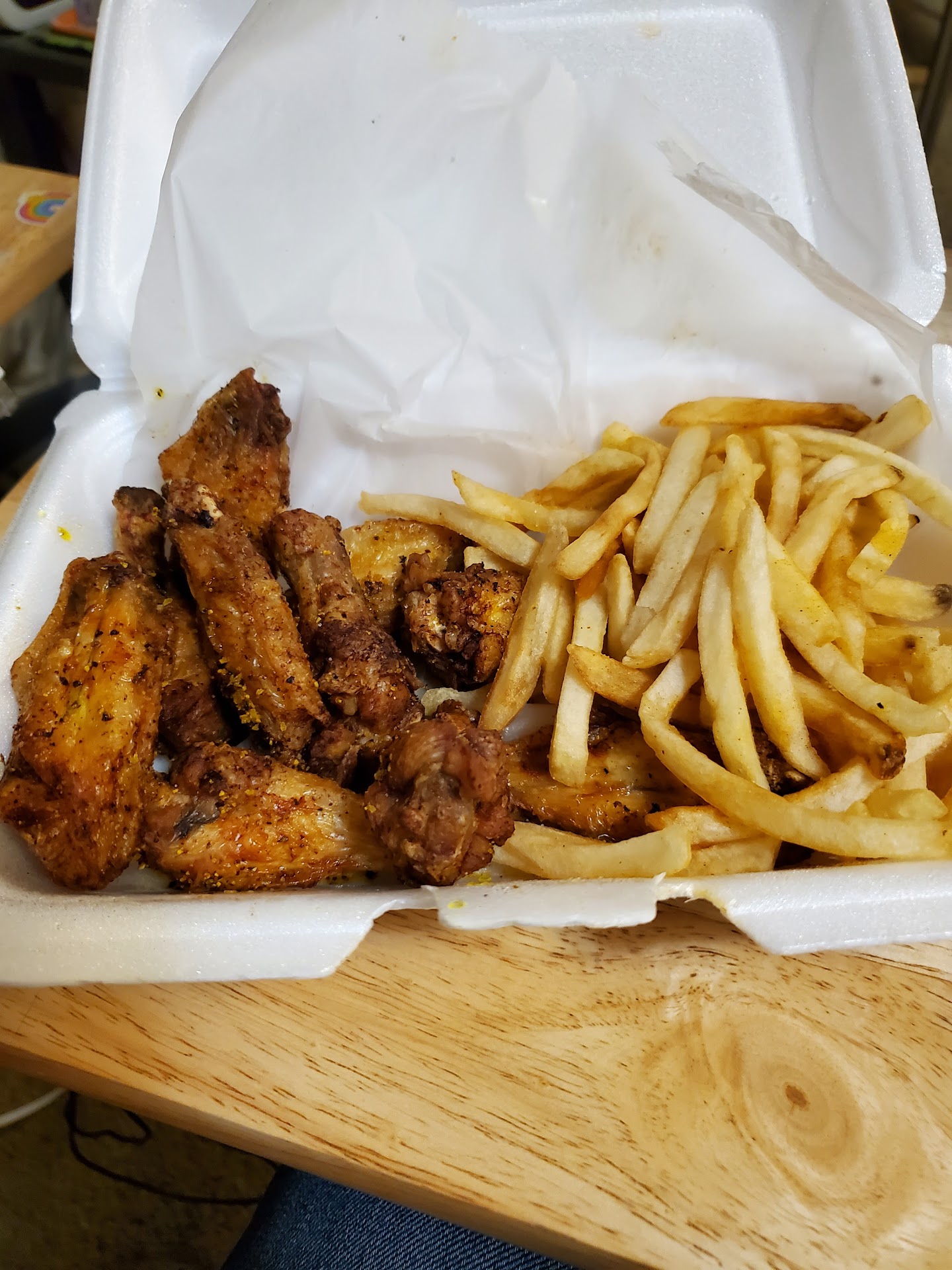 This was my very first time 7/7/23 ever going in as many times as I have passed the place. Ducked in to use the bathroom saw a menu then placed ordered. They have TVs and a nice bar area didn't check the prices probably high like the food was. First off I didn't like they had no posted signs telling you they add a swipe fee when a debit/credit card is used so that added an additional .39 cent to my overpriced order! Why didn't the cashier mention there is a swipe fee added when a card is used? Why mislead the customer?? I let the guy know IF I came back I wouldn't be using my debit card treat em like the gas station ONLY use cash!! Second they have outdated menus I ordered 10 wing comb lemon peppered dry, on the menu it was $8.99 (I was charged $9.99) and to add the drink and fries was $2.50 (I was charged $3.00 no deal). I was charged $12.99 for the combo when by the menu I should only have been charged $12.49!! If you're hungry you don't get your money's worth because they using the smallest wings and the smallest fries on!! Brought out the very small container I had spent $14.49 for like he was trying to hide that very small container I was so disappointed!! Usually places SHOW you the food I had to ask! Compared to Yum's same combo the price is $13.06 and the wings are way bigger and they used the crinkle cut fries which is much bigger than the shoestring size as well. Why not alter the menu to show the new prices like they charge $3.00 for a can drink and those small shoestring fries!! Third the food is NOT value priced the wings were very, very small AND the fries were the shoestring kind which is also very, very small. I placed my order it took ALMOST 30 minutes to get the order which was cold when I got it. No offers of extra just a weak I'm sorry almost lost 2 bags of ice fooling with them!! The wings had been fried too long and with them being so small they tasted tough when eaten and those shoestring fries when cold was like eating glass!! I didn't taste much lemon pepper it was more of a spicy rub on the chicken I don't prefer NOTHING spicy!! As I stood in the place looking at people come in many walked in and placed orders got them and left while I still waited for my food. They could really used some more space as everybody seemed all crowded together behind the counter especially near the kitchen with the refrigerator door open holds up progress from the kitchen which added to my wait time!! Don't know if there will be a second time I am a visual person and overall I didn't like what I saw not saying their not a good spot they were off their game when I came in. The guy was surprised when I told him this was my first time ever coming into the place!! I am not adventurous when it comes to food if it doesn't look or smell right I'll PASS ... I love places that give me my money's worth plus I usually have something to eat for later with Mr. Pig's Smokehouse had to eat the whole meal!! Nothing was left for later when I got hungry again as their portion size on the wings AND fries were very small. I added 2 pictures one of the food and the other the container the food came in compared to other wings spots Mr. Pig's Smokehouse is fighting near the bottom with the other wing places that say they selling wings when what they selling is smaller portion which shouldn't even qualify as a wing. Sad the play on words and the ripoff that comes with it welcome to greedy America where they want all their money but the consumer is left feeling robbed š¢ with the very small portions they get away with selling .. you take or leave it this is the very reason my eating out has dropped off not getting my money's worth. I should have just used the bathroom and went on home instead of wasting time placing as order and being very disappointed š with the results which wasn't worth what I spent. I know the food business is hard and people trying to make a buck and provide a service but the eatery don't treat the customer right serving the smallest portions of stuff while collecting ALL their money!! Make it make...