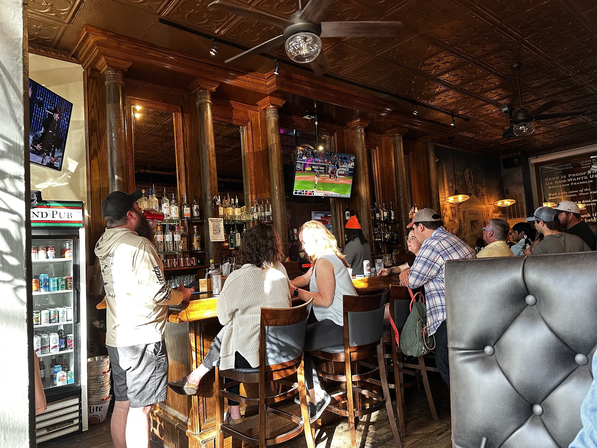 They highlight Samuel Inman-owned large cotton house. I wonder who was working the cotton house and at what wage… Open late dive bar. Dark and moody inside. Football jerseys up and Atl heritage nicely placed. Not so large with seating but doesn’t feel small at all. Good seats. Found street parking easily. I noticed the great prices right away.