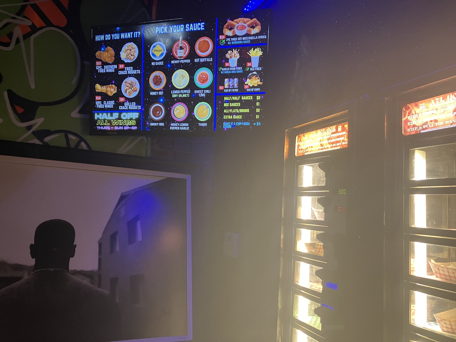I ordered the: Wings (1/2 calamansi white pepper and 1/2 tocino flavored) with pork and veggie lumpia BBQ chicken skewers with rice and atchara Vegetable tofu pancit