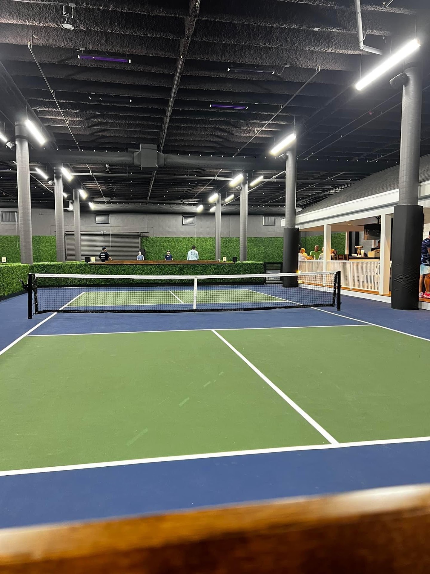Otherwise, my visit was good. We arrived around 4pm and waited 2 hours for a court. The free games on the other side of the venue was fun and we were always able to find something to play if we wanted to. The bartenders were great. The pickleball host was kind enough to pour our drinks from our glasses into plastic cups for us, since no glass allowed on the courts. The courts themselves were nice and I love that there are walls on each side to limit my terrible balls going into other people's courts.