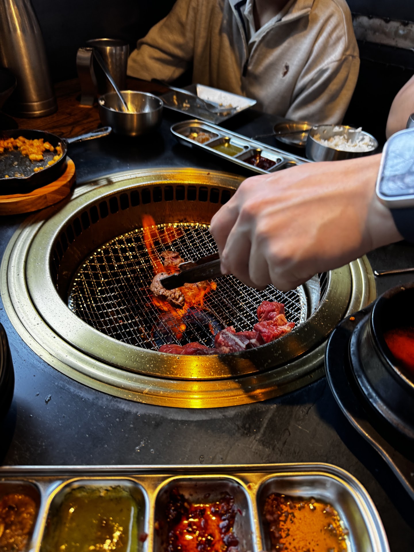 Entering the doors and meeting the maître D. I told them I’ve never eaten Korean barbecue before however help us understand how it works and we are interested in eating.