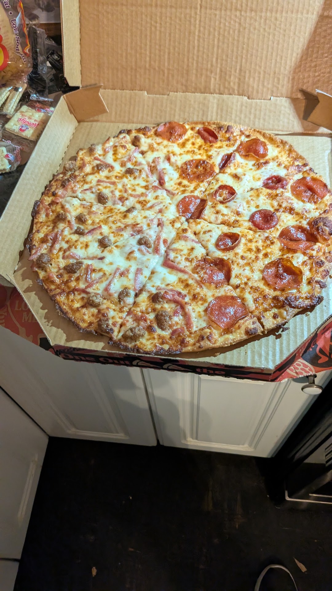 Mind you, I live 3 minutes from this location by the river in Cobb County. I ordered online, and the message I received said i would receive the pizza in 90 minutes.