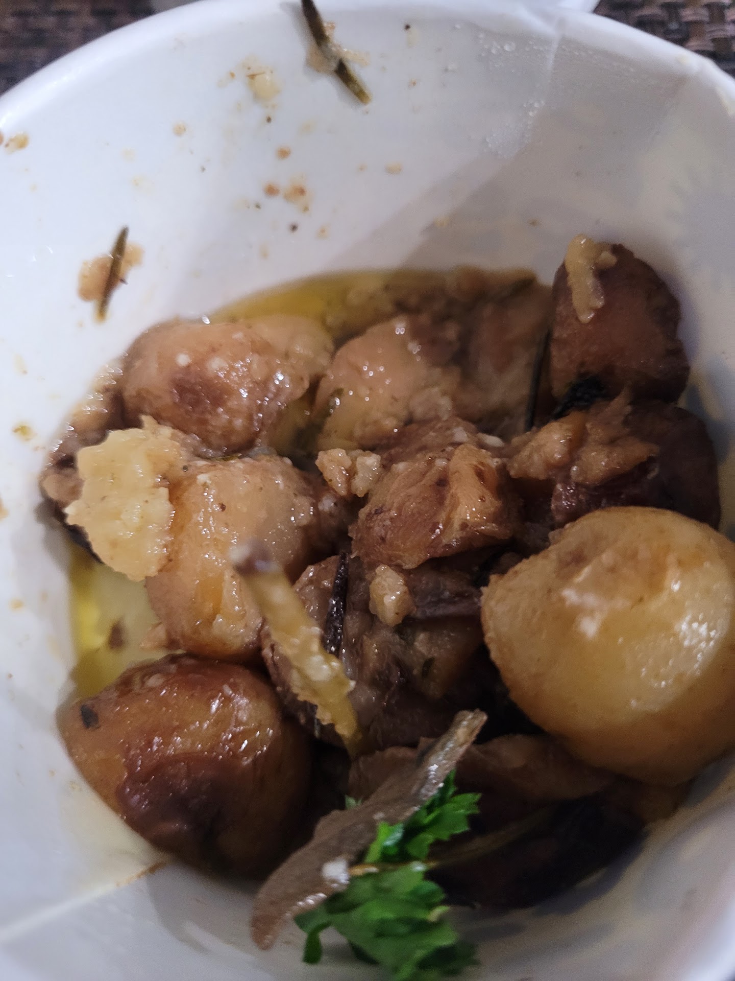 The lemon potatoes had multiple tbsp of oil in the bottom and were mushy. The fries were fries with grated parmesean.