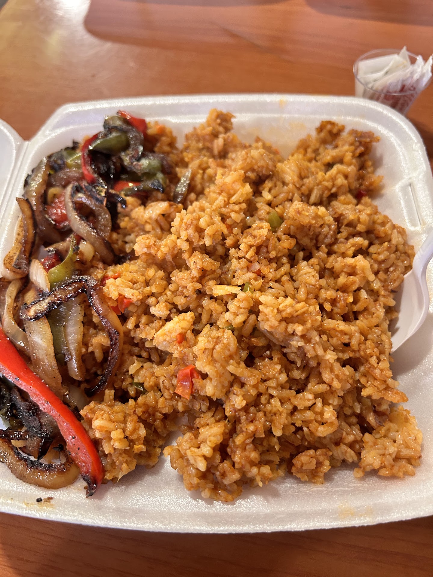 I went to this restaurant at 10:20pm and I was the only customer and it took 20 minutes for my food to be done. I ordered the jerk chicken, jollof rice, and mac and cheese. Look at the picture of this mac and cheese. It looks disgusting like boiled macaroni elbows with cream cheese on top. I didn't even eat it. The jollof rice looked good and tastes okay but there were so many clumps and I didn't want to eat the whole thing cuz why is this rice so clumpy? I give my food a 1/10 rating. The jerk chicken was edible, but nothing special either. Another negative is that they have a very old cash register but were unable to take card payments so I had to use cashapp. Finally, I noticed that they used Walmart bags to put the food in for take-out. š¤¦š¾āāļø I tried supporting this restaurant because I love international food but this was not a good taste...