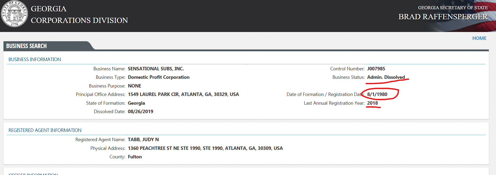 Read moreClearly sir, you just hijacked the good name of the REAL Sensational Subs! The REAL Sensational Subs was Administratively Dissolved many years ago. (SEE SCREENSHOTS)