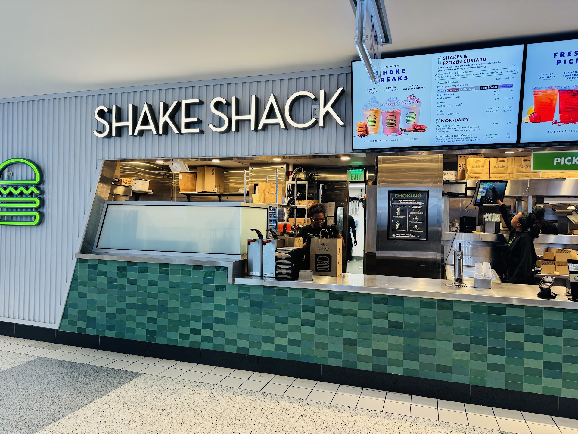 I will say going up to Shake Shack in the food court area. The cashier was extremely nice , customer service skills were awesome. She was super sweet. Her name was Joe and the manager that was there with her, his name was Eric. They were really nice to me and very patient with me, due to the fact, this was my first time actually ordering a meal from Shake shack. They gave me some of their favorite choices on the menu, excluding the burgers (the burgers are super great to me). She recommended chicken shack, I believe it was about $8.00 for the sandwich ONLY A andās the fries address about $4.00, theyāre sold separately and I will honestly say, I did not personally like it due to the fact, I like my chicken sandwiches seasoned with the sweet and salty taste. But try it at your own cost.
